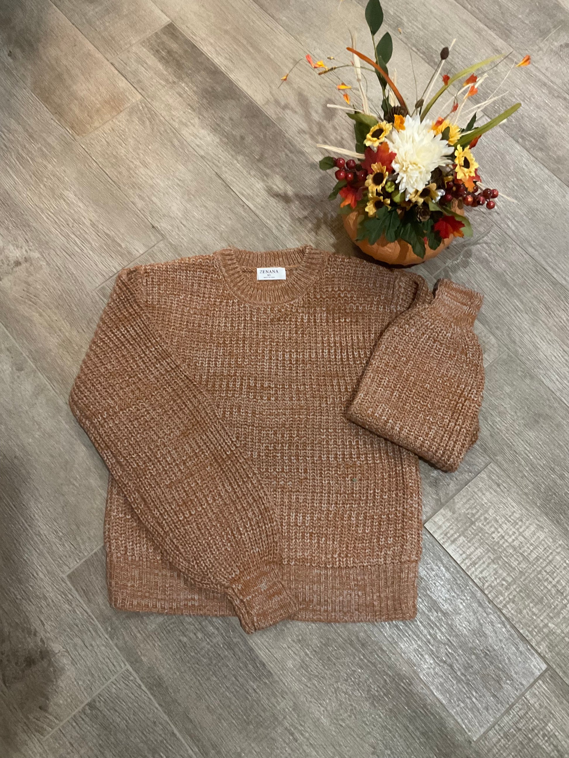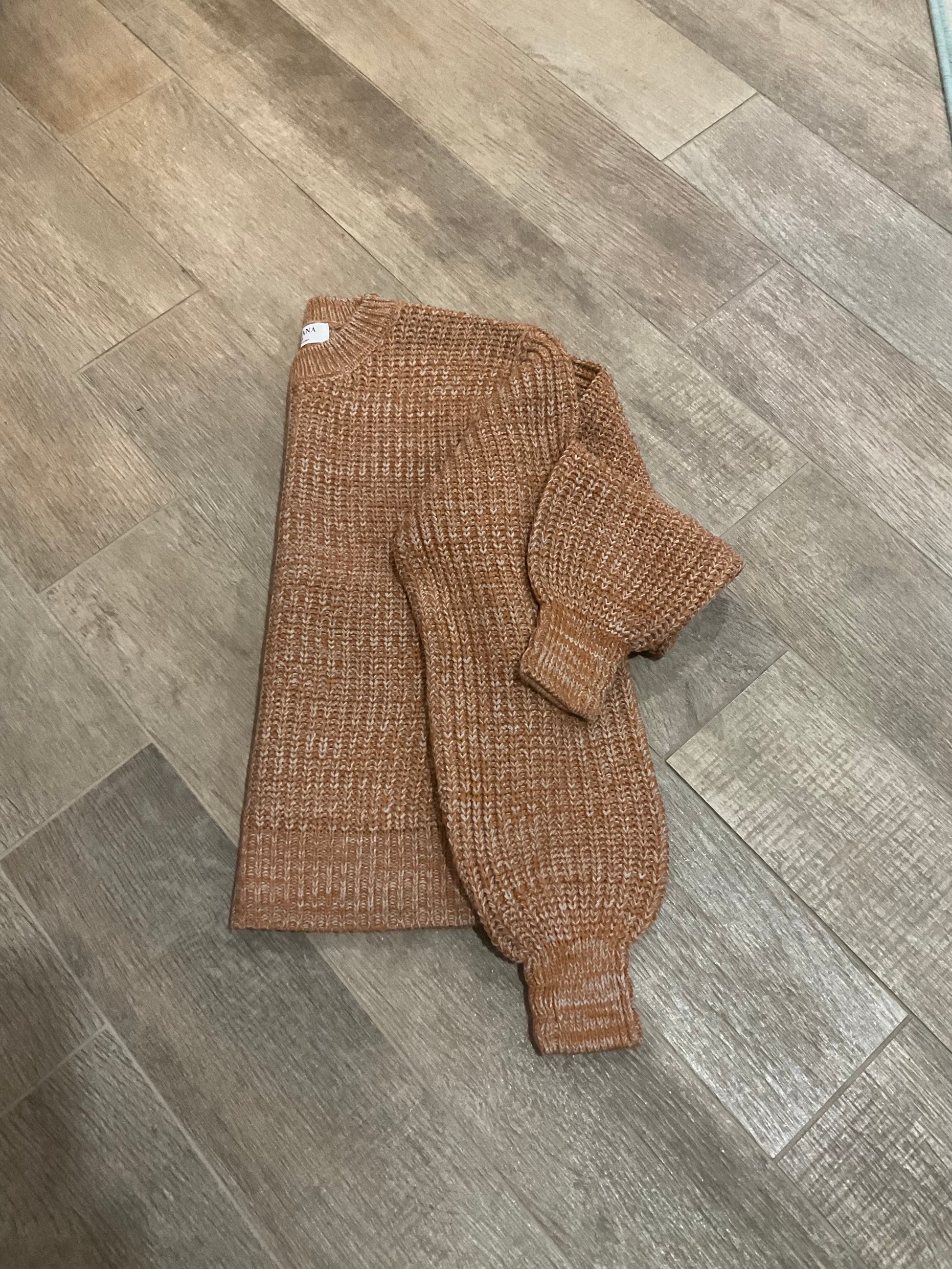 This cute sweater is perfect for the season. Featuring a stunning orange & grey textured color with balloon sleeves. You can't go wrong with this sweater.